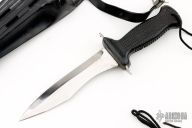 This Grisbi Dive Knife features a polished double edged partially serrated blade with .201" blade stock and 1.429" blade depth, hidden tang construction. The ahndle has a hard rubber grip. Comes with original rubber leg sheath. Has some scratches and a few oxidation spots, otherwise good condition for its age.
