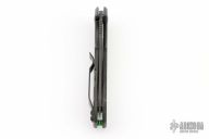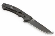 The Dmitry Sinkevich designed ZT 0450CF knife is a compact version of the award-winning 0454 folder. It has an S35VN stainless steel blade with a black DLC finish. A flipper and the KVT ball-bearing pivot produce reliable, quick one-hand deployment. The titanium handle has a sturdy frame lock and a stylish carbon fiber scale that contrasts nicely with the black blade. A reversible tip-up carry pocket clip rounds out the package.  S/N 34621.  Excellent Condition.