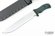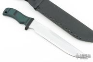 Mad Dog and Jake made 10 of these 2020 Panthers this one is #003.  The knife has a 10” file worked GTL finished blade, custom etching (aka Panthera), custom green/black FR4 handle.  Sharpened top edge.  .25" Blade Stock.  1.609" Blade Depth.  All with the standard “Mad Dog” signature on the ricasso. No duplicates will ever be made. Includes original kydex sheaths and COA. Excellent condition.