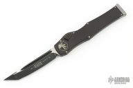 This Halo VI by Microtech knives features a black tanto blade with fullers and satin flats. The handle has a black aluminum frame with blasted stainless steel hardware and charging handle. Dated 07/2018 and s/n 1650. Comes with original box, sheath and papers. Has some light scuffs, has some wear on the finish, otherwise good condition.