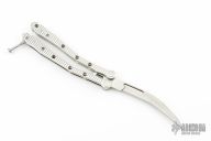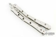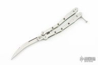 This Balisong by Rob Dalton features a polished hawkbill blade. The handle has machined titanium over steel standoffs. Steel T latch on handle. Excellent Condition.