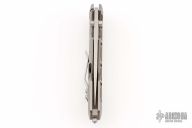 This Centauro by Raid Ops features a tumbled, clip point blade with dual thumbstuds and a flipper. The handle has a tumbled and milled titanium frame, tumbled titanium backspacer, steel glass breaker at the butt and a tip up tumbled stainless steel clip. Comes with original box, sheath and papers. New from maker.