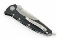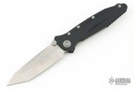 This Socom Delta by Microtech Knives has a tumble finished tanto blade with a plain edge and a contoured black aluminum frame. Dated 01/2013 and serial number 01056. Nice detent, lockup and blade seating. Comes with original box and papers. Excellent condition.