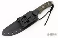 This Hide Fighter by Steve Woods and Wilson Combat features a bead blasted blade with a fuller on one side, .200" black stock and 1.606" blade depth, full tang construction. The handle has black/green G-10 scales. Comes with a kydex sheath, challenge coin and COA. New from maker!