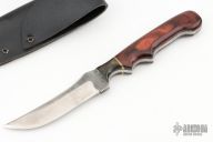 This Hunter by Anza Knives features a blade made from a file, dymond wood scales with a brass spacer, .196" blade thickness and 1.131" blade depth, full tang construction. Comes with a brown leather sheath. Has some rust spots, otherwise good condition.