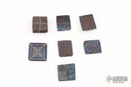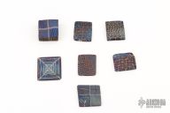 These Mosaic Damascus Tiles by Robert Eggerling are 1.25-1.5" long, 1.125-1.225" wide and .170-.556" thick.