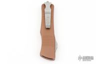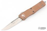 This Troodon by Microtech features a satin finished single edged blade. Tan aluminum handle with glass breaker and stainless steel clip. Dated 11/2018, S/N 1770. Has a few light scratches otherwise the knife is in excellent condition.