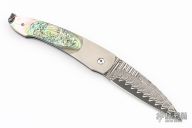 One-off Button Lock Folder- Damascus & Abalone