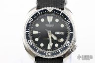 This watch comes with a NATO band attached. Also includes original box and papers. Has scuffs and scratches throughout, good condition.
