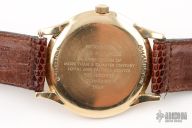 The movement in this watch is stamped "HLY" which was Hamilton's U.S. Import mark. It appears this watch was made for the US market, and it was common for companies to use 14k gold for U.S. market watches, like this example.
