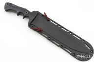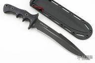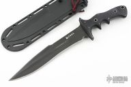 This 2210 Hammond Flesh Eater by CRKT features a black double edged blade with notched thumbrest, .238" blade stock and 1.461" blade depth, hidden tang construction. The handle is two-piece black G-10 with hollow tube pins. Comes with molded plastic sheath. Has some wear on the blade finish, has some scuffs and scratches, otherwise good user condition.