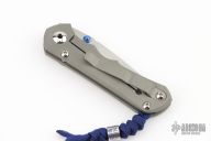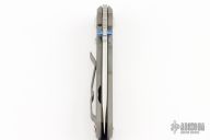 This Small Inkosi from Chris Reeve Knives features a tumble finished drop point blade with dual anodized thumb studs and notched thumbrest. The handle is comprised of a two tone bead blasted titanium frame over a single barrel spacer with a matching bead blasted titanium tip up clip. Handle show side has laser engraving, as well as the matching bead. Comes with original box, papers, cloth, tool and lube. Papers dated June 22 2015. Excellent condition.