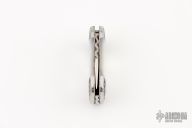 This Lockback by Philip Booth features a hand rub satin finished blade with nail nick and fileworked spine. The handle has engraved stainless steel bolsters, mother of pearl scales, black fileworked stainless steel liners, fileworked stainless steel backspacer. One of the bolsters is engraved "BB" and the other is engraved "RN" on the spine of the bolster. Has a few very light scratches, otherwise excellent condition.