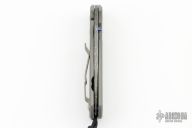 This small sebenza 21 by Chris Reeve Knives features a Devin Thomas Basketweave Stainless Damascus blade with single titanium thumbstud and a notched thumbrest. The handle is bead blasted titanium. Handle has very classy scroll work engraving, with gold inlaid CRK logo. Strong lock up, nice detent and blade seating is dead center. Includes original box, tool, lube, cloth and paperwork dated July 30, 2018. Has a couple light scuffs, excellent condition otherwise.