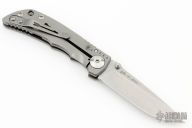 The Spartan Harsey Folder 3.25 “SHF 3.25” This is Spartan Blades latest folder collaboration with legendary knife maker, William "Bill" Harsey Jr. The SHF 3.25 is the knife many of you have been waiting for! A reliable 6AL4V titanium frame-lock knife with a 3.25” CPM S45VN blade. Easy to carry and comfortable in the hand; a truly exceptional gentleman's (or ladies) folder. Constructed like its award winning big brother the SHF, the SHF 3.25 is totally made of 6AL-4V titanium, except the pivot, blade and stop pin. This medium-sized folder has a reversible pocket clip and dual thumb studs allowing for left and right hand carry. If you are looking for a high quality and well-designed folder this is one you should strongly consider! Excellent condition.