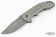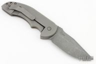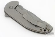 This Custom Crossfire framelock flipper by David Mosier features an acid tumble finished blade with false top edge, notched thumbrest and flipper. The handle has a tumbled and milled titanium frame with matching tip up clip, titanium barrel spacers. Smooth IKBS flipper action requires no wrist movement. Strong lockup, nice blade seating and detent. Nice feel in hand. Excellent condition.