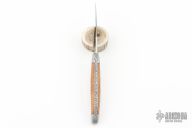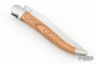 This knife features a bead blast finished clip point blade with a nail nick. The handle features steel bolsters/liners over a steel backspring and olive wood covers. Fileworked backspring. Includes original box. Excellent Condition.