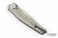 This 0707 folder from Zero Tolerance features a tumbled blade with swedge. The handle has a carbon fiber scale on the non lock side, and a tumble finish titanium frame lock on the other. Black coated stainless steel, tip up pocket clip. Includes original box and papers. Excellent Condition. #0226