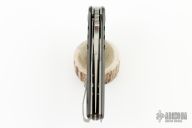 "Jason Brous began his efforts in knifemaking with the benefit of nearly 10 years of experience in CNC machining. His father owns a shop that specializes in the custom machining of high-precision components, mainly for the medical industry. Jason spent a lot of time in his father’s shop while growing up, and by his mid teens was actively helping out with production. His skills and knowledge steadily increased and by the time he was 20 he was a seasoned and very competent machinist. Jason's interest in knives actually began with art - specifically a style called “Bio-mechanical” - as practiced by one of his favorite artists, a Brazilian painter and tattooist named Lango. Biomechanical art (also called Biomech) is a surrealistic style of art that combines elements of machines and robotics with organic animal features. Intrigued by this style of art and its similarity to many fantasy knives, Jason figured that knifemaking would be a natural extension of his metalworking skills and an appropriate medium for his artistic ideas. Although he had no specific training in knifemaking, in 2010 he designed and made his first knife - a fantasy design with a Biomech flavor. Through persistent trial and error, Jason changed his style of knife design to focus on functional simplicity, while still maintaining a strong artistic signature. His early successes came in the form of a series of stout neck knives with dual finger-hole grips. Fans of these “Silent Soldier” neck knives began asking for other expressions of the design. Since then, Jason has created numerous variations including a clip point version, a tanto version and the very popular folder version called the Silent Soldier Flipper."
