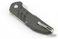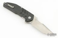 This Strife Linerlock Flipper (233/500) has a satin finished D2 tanto blade with swedge and notched thumbrest. Handle is carbon fiber over titanium liners. Black G10 and titanium backspacer, lanyard loop, and stainless steel tip up clip. Centered blade, flips great, and rock solid lockup. Excellent condition. Comes with Brous box and CoA.