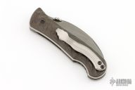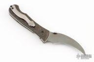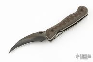 This Elvia Folder by Korth Cutlery features a DLC hawkbill blade with thumbdisc. The handle has micarta scales, orange peel finished titanium liners and a tip up titanium clip with g10 backspacer. Comes with Velcro case, COA, and patch. Rides on IKBS, nice detent, lockup and blade seating. New from maker!
