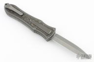 This knife is a Deadlock Model C by Grant and Gavin Hawk. It has a double-edged stonewashed blade. The handle has a Fat Carbon inlays in the stonewashed titanium frame with a tip down spring clip, titanium. The thumb slide on the handle is also titanium and handle has a titanium overlay. Comes with original zippered case, tool and card. Grant and Gavin Hawk set out to create a double action OTF with no blade play.... They did it, NO blade play. New from maker at the 2024 Blade Show.