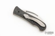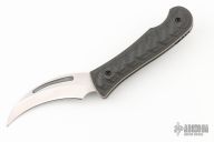 This Elvia Slipjoint Folder by Korth Cutlery features a stonewashed hawkbill blade with fuller. The handle has carbon fiber scales, orange peel finished titanium liners and a tip up titanium clip with g10 backspacer. Comes with zipper case and card. Nice walk and talk! New from maker!