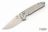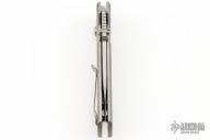 This Project VECP Buttonlock from Les George features a stonewashed CNC flat ground blade and a tumble finish titanium frame. Tip up titanium clip. Phosphorus bronze washers. Smooth action. Nice blade seating, detent and lockup. Comes with a zippered case. New from maker at the 2024 Blade Show.