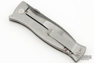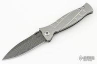 This MK3 by Les George features a Damascus blade with false top edge and knurled thumbdisc. The handle has a stonewashed titanium frame with Sweep pattern and a titanium tip up clip. Nice detent, lockup and blade seating. Comes with a zippered case. New from maker at the 2024 Blade Show.
