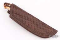 "My interest in knives started when my father gave me my first hunting knife at the young age of 12 years old. I started collecting knives about 1985. In 1995 I started repairing hunting knives, sharpening, and repairing handles so that I could resell them. I also went to swap meets and bought files to make knives which lead to better steel and handle materials. It just evolved into what it is today, over 25 years later. I went from a file and sandpaper to a 72” belt sander. I talked to every knife maker I saw to further my education in developing my techniques to make a better knife. I have never stopped learning new techniques to use. All of this helped me to progress into the knife world. My father taught me to do leather work so I hand make all of the sheaths for the knives. Each knife is numbered and has its very own matching numbered sheath that has been especially molded to that knife."