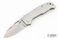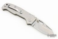This Compact AD20 by Demko Knives features a stonewashed blade with notched thumbrest.  The handle has a textured titanium frame with a tip up stainless steel clip and "Shark" lock release on the spine. Comes with original box. New from maker at the 2024 Blade Show.