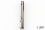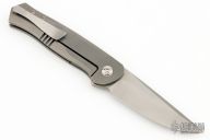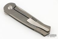 This A.Y.U. flipper by Richard Rogers features a bead blasted blade with notched flipper and false top edge. The handle has a tumbled and milled titanium frame with matching backspacer and tip up clip with hidden screws. Nice detent, lockup and blade seating. Comes with original case and COA dated Blade 2024. New from maker at the 2024 Blade Show.
