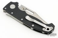 This AD20 by Demko Knives features a stonewashed clip point blade with notched thumbrest.  The handle has a black G-10 frame with a tip up stainless steel clip and "Shark" lock release on the spine. Comes with original box, sticker and patch. New from maker at the 2024 Blade Show.