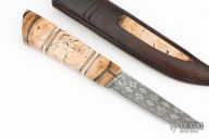I was born in Ethiopia in 1963, where my parents were missionaries. In 1976 my family returned to Sweden to a village called Mellansel - a railroad community just 35 km from "Foppaland", (where Peter Forsberg was born) Örnsköldsvik. I crafted my first knife at the age of 15 while still at school, but it was after University that i became more serious about his craft. Many year i lived in Northern Sweden in a small village called Lövånger whit my first wife until she past away in breast cancer 2008. Sense 2010 i live in Gävle, two hours upside Stockholm whit my new wife Pia. My profession is a school counselor, but my free time is devoted to crafts and outdoor life. In my knives i use traditional Swedish materials such as curly birch, reindeer horn, and mammoth ivory. My knives are very influenced by Sami culture, the native peoples of Scandinavia. I makes my own sheaths and embosses them with a lion and a cM. The Lion symbolizes my childhood in Ethiopia. As i say, "The lion's courage is undisputed, and inspires me to 'dare to win' when crafting my knives." I has been featured in Excalibur, France's primier knife publication.