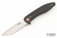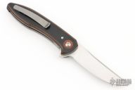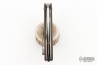 This knife by David Sharp features a hand rub satin finished blade with swedge and flipper tab. The handle has layered burlap micarta scales with crosscut natural canvas micarta pivot collars, blasted titanium liners, tip up titanium clip and a micarta backspacer. Nice detent, lockup and blade seating. Excellent condition.