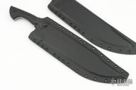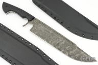This Puzon Predator Hunter by Work Tuff Gear features a toxic apocalyptic finished SK85 Steel blade with false top edge and a convex cutting edge, has fullers, .225" blade stock and 2.525" blade depth, full tang construction with black G-10 scales. Comes with 2 kydex sheaths and zippered case. New from maker at the 2024 Blade Show. 2nd Production.