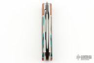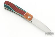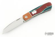 This Apache Front Flipper by Enrique Pena features a hand rub satin finished blade with notched thumbrest/front flipper. The handle has micarta bolsters and scales over a titanium frame and micarta backspacer. Comes with maker's zipper case. New from maker at the 2024 Blade Show!