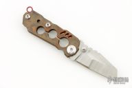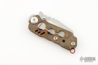 This Invaderling Atom by TASKnives features a satin finished, multi-ground blade with a notched thumbrest, false top edge and dual thumbstuds. The handle has layered titanium scales. Knife does not lock, it is a slipjoint. Has lanyard bail. New from maker!