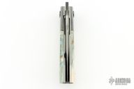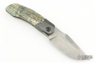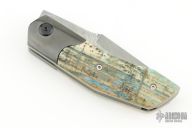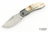 This Linerlock Front Flipper by Richard Soler features a Stainless Damascus blade with notched thumbrest and front flipper. The handle has zirconium bolsters, mammoth ivory scales, bead blasted titanium liners, carbon fiber backspacer with lanyard pin. Comes with a zippered case and COA. New from maker at the 2024 Blade Show.