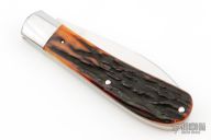 This Bose Pattern Zulu Spear by Charles Vestal features a hand rub satin finished blade with nail nick. The handle has 416 stainless steel bolsters with integral liners, stag covers, CPM-154 spring. Has half-stop, flush in all positions. Comes with a zippered case and COA. New from maker at the 2024 Blade Show.