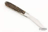 This Remington 1143 by Mike Zscherny features a clip point blade with a hand rubbed satin finish and nail nick. The handle has stainless steel bolsters, stag covers, stainless steel liners and spring. Half stop on blade, flush in all positions. Comes with a zippered case and COA. New from maker at the 2024 Blade Show.