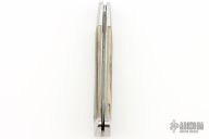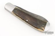 This Single Blade Tapper by Bubba Crouch features a Damascus blade with a nail nick. The handle has stainless steel bolsters with integral liners, mammoth ivory covers with a carved stainless steel arrowhead escutcheon, stainless steel spring. Has half-stop, flush in all positions. Comes with a zippered case. New from maker at the 2024 Blade Show.