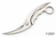 Rike Knife Tactical Scissors. Made from 4116 Stainless Steel. Spring loaded action with locking button. Easily disassembled for cleaning. Blade Show Atlanta 2024 Kitchen Knife of the Year Winner.