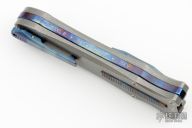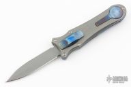 This knife is a Deadlock Model B. It has a double edged stonewashed blade. The handle has a stonewashed titanium and anodized titanium frame with a tip down anodized spring clip. The thumb slide on the handle is also titanium and handle has titanium overlays. Grant and Gavin Hawk set out to create a double action OTF with no blade play.... They did it, NO blade play. Excellent condition. Comes with a leather zippered case.
