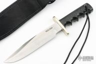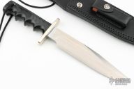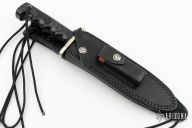 This Model 14 by Randall Made Knives features a satin finished blade with sharpened top edge, .219" blade stock. 1.380" blade depth, full tang construction. The handle has a nickel silver guard, black linen micarta handle with a lanyard hole at the butt. This knife was designed to meet the demand for an almost indestructible all-purpose knife, though it is especially suited for combat and survival purposes. Comes with black leather sheath and original paper wrapping. New from maker.