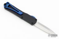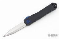 This Manticore-S by Heretic Knives features a stonewashed double edged blade. The handle has a black aluminum frame with blue accents and tip down stainless steel clip. Comes with original box and lube. New from maker at the 2024 Blade Show.
