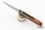 "I believe that in order to make a superior knife you must use superior materials. That is why I work with top grade, high-tech materials. The steels I generally use in my folders and fixed blades are CPM S30v, CPM 154 CM, BG-42, and Damasteel. The handle materials I mostly use range from G-10, Micarta, and carbon fiber to mother of pearl and fossilized mammoth ivory. I exclusively use 6al/4v titanium for the liners in my folders. I mostly make my bolsters from materials such as 6al/4v titanium, damascus, carbon fiber, timascus or mokume. When making Japanese style blades I generally use 1050, 1084, or L6. The handles will usually consist of a phenolic handle covered in stingray skin then wrapped with a nylon cord that has been impregnated with resin to give it maximum strength, toughness, and longevity. I am constantly striving for perfection in creating, for what I feel is one of the highest quality knives on the market today."
