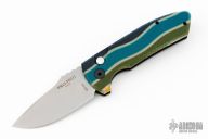 This one has Unique Micarta front and mother of pearl inlaid push button. Comes with original box and papers. New from maker!