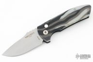 This one has Unique Micarta front and mother of pearl inlaid push button. Comes with original box and papers. New from maker!
