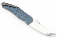 This Auto by Carlos Queiros features a mirror polished blade with satin finished flats.  The handle has Zircuti scales, a Zirconium backspace/tip up clip and titanium liners.  This knife is an automatic.  The blade is deployed by pushing down on the flipper tab; it looks like a flipper but is an automatic.  This knife won Blade Show 2024 Most Innovative Design.  This thing is neat!! New from Maker!